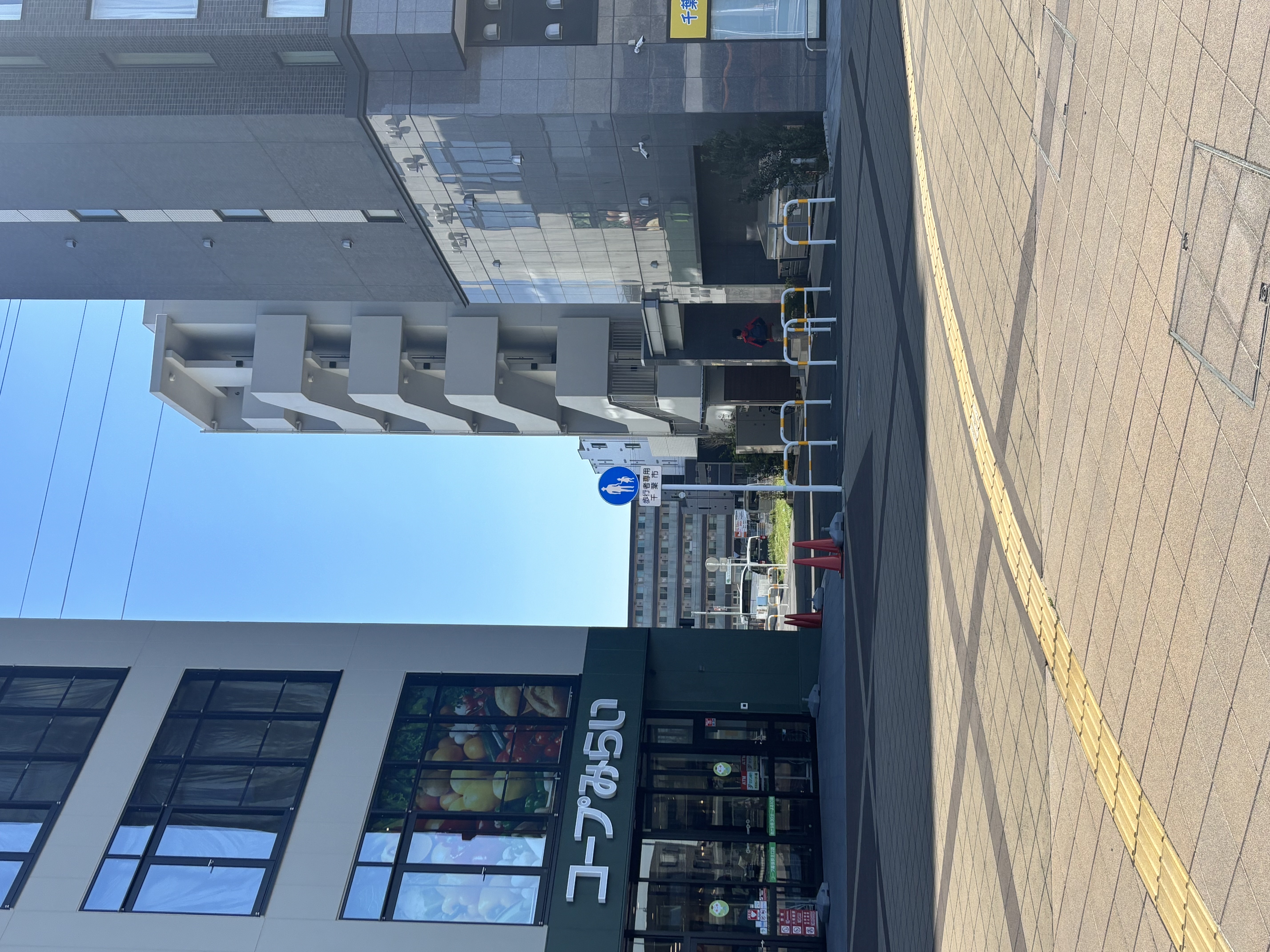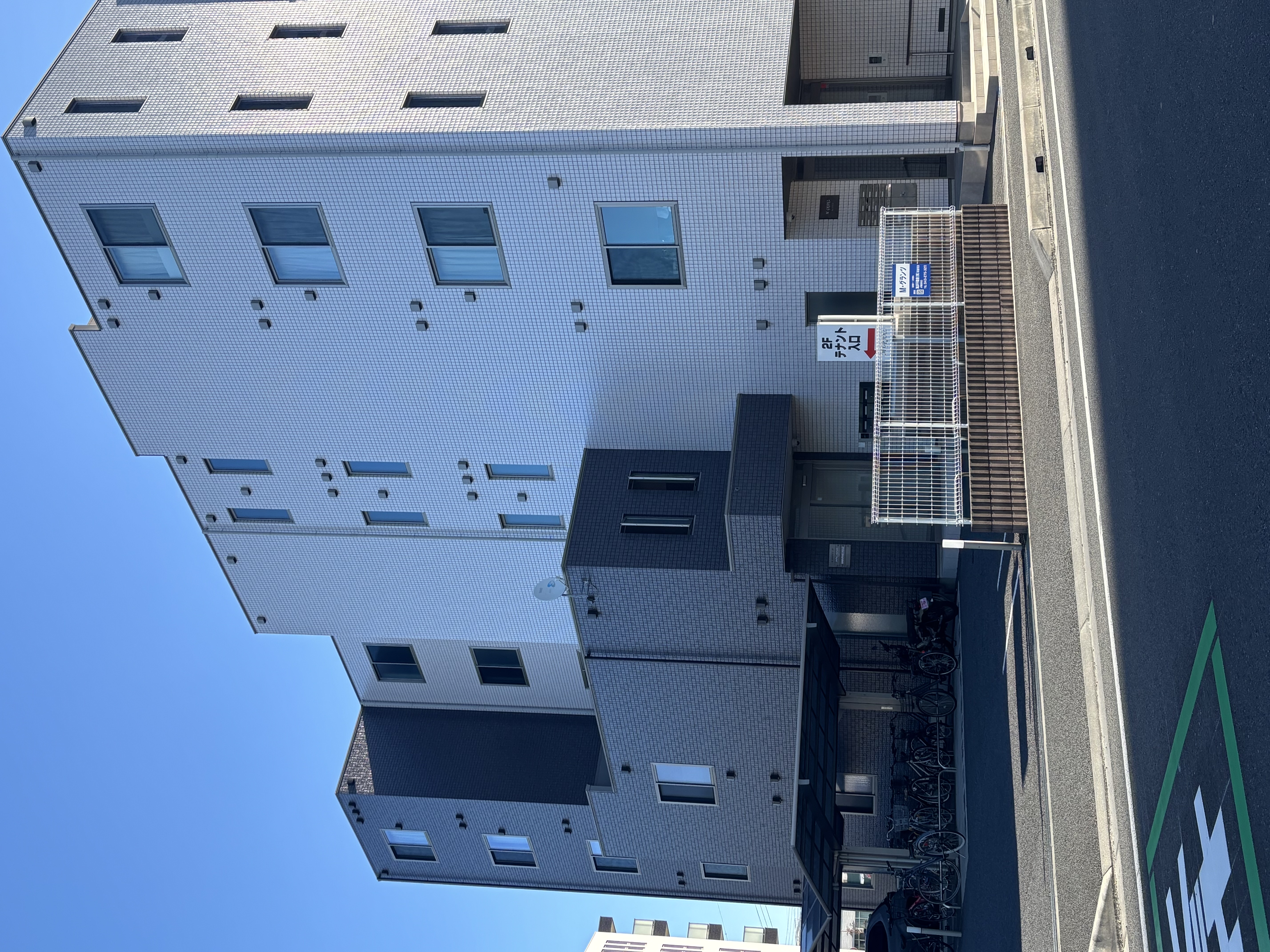 幕張駅北口は再開発が進み、バスロータリーが完成しました。 駅の階段を左側に降りて、コープみらいの角をそのまま進みます。コインパーキングの角を渡るとビルの入り口があります。 自転車置き場脇の入り口からお入りください。 駅からクリニックの入っているビルのクリーニング店の看板が見えます。その2階です。